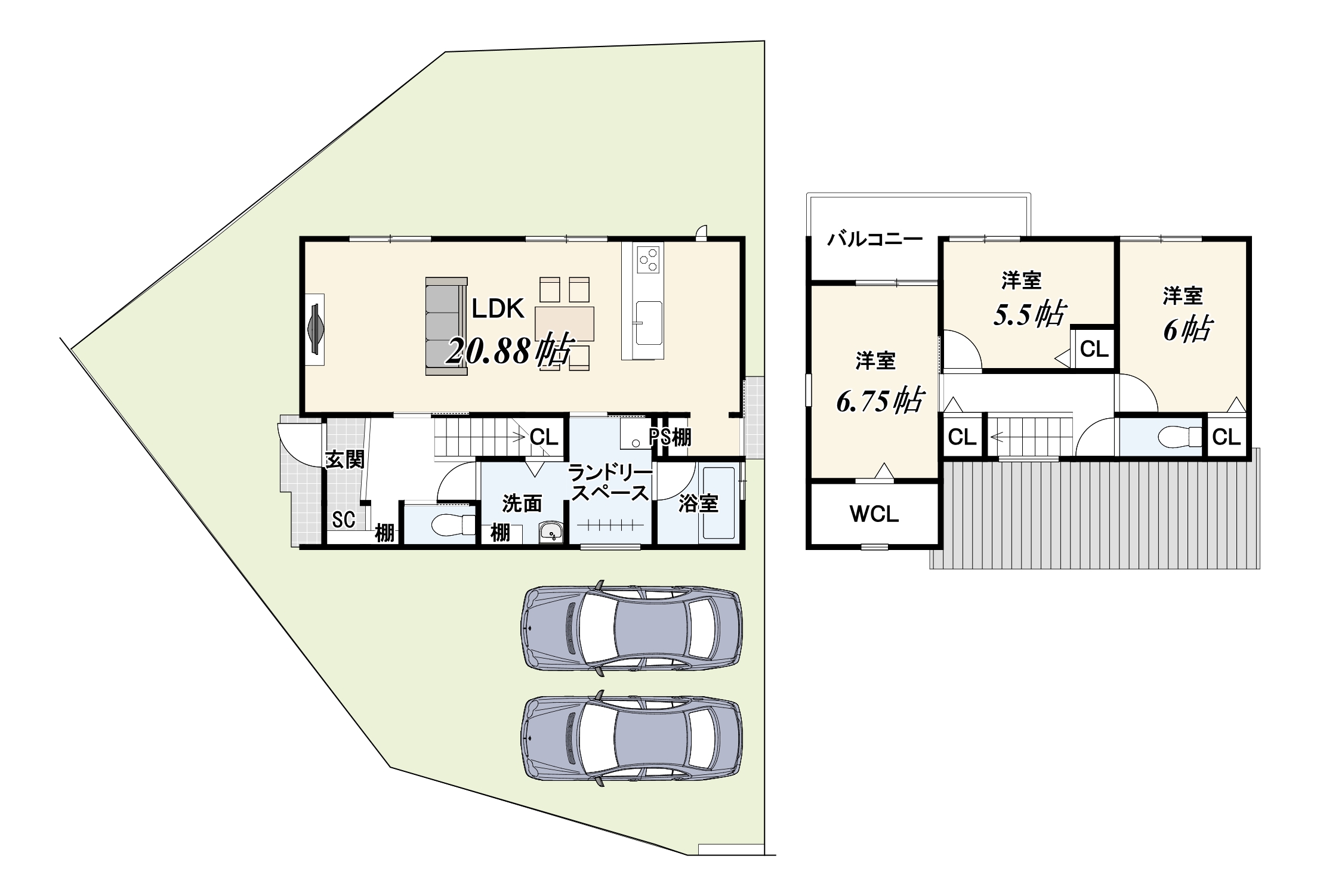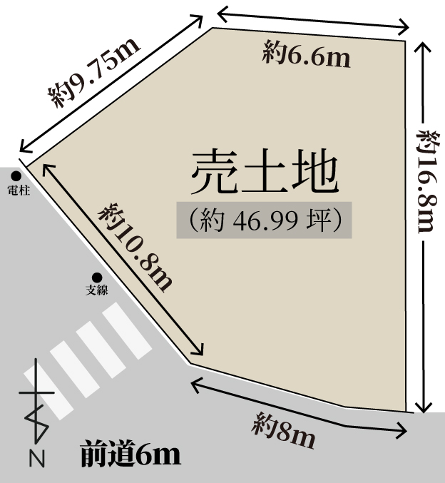 北(公道)幅員:6.0m・間口8m 東(公道)幅員:6.3m・間口10.8m