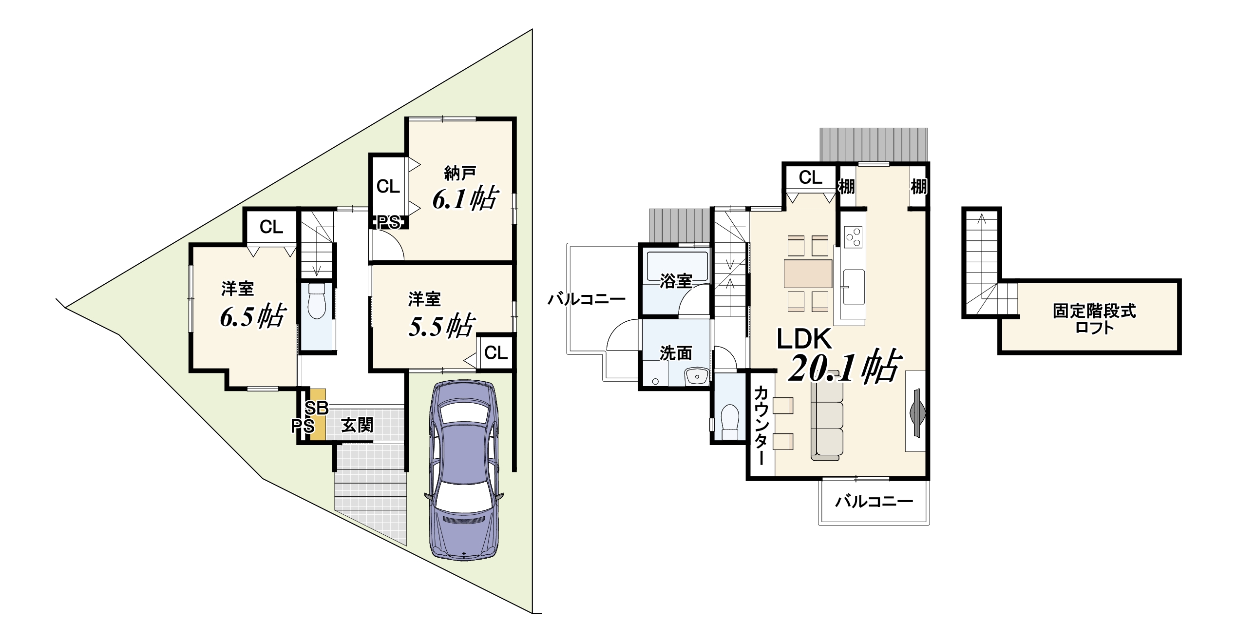 ・リビング20帖確保!