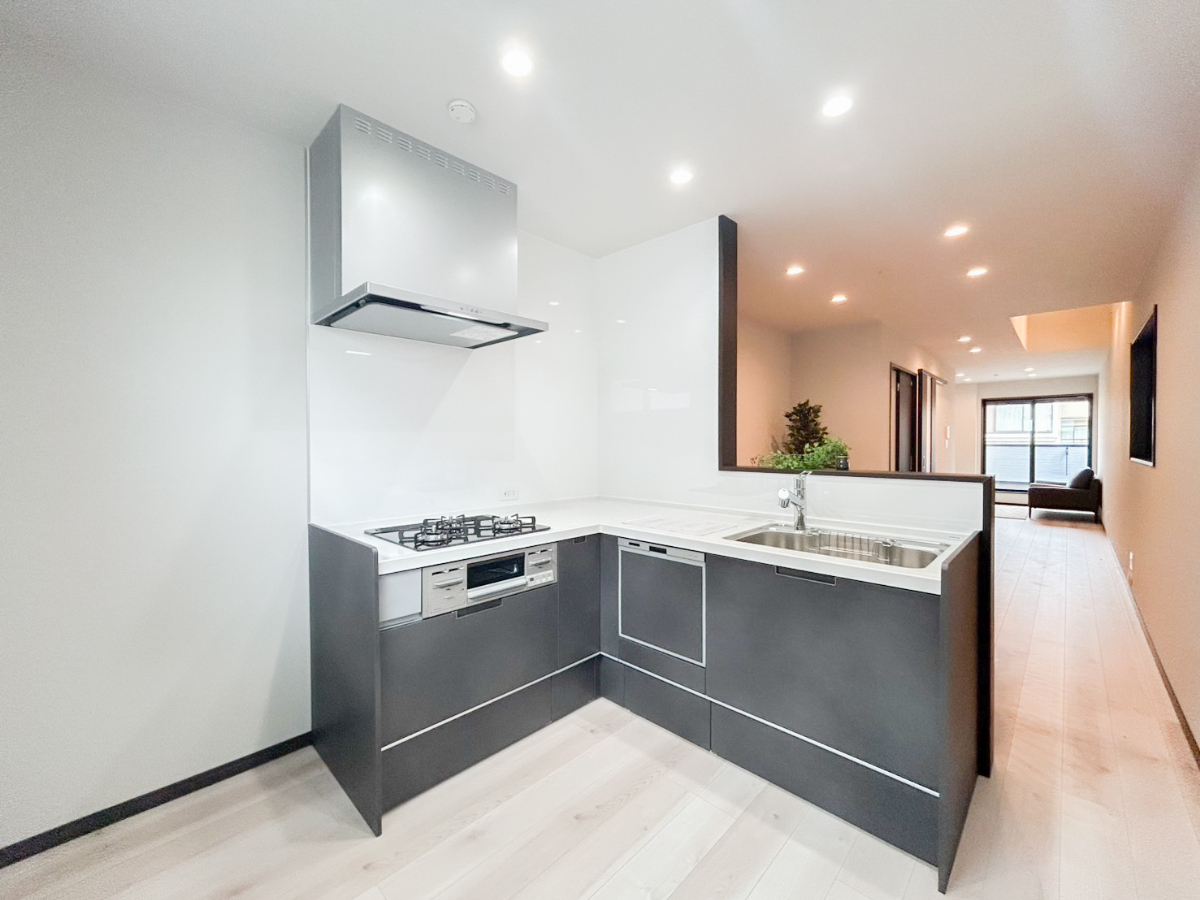 キッチン内での作業動線が短く、小回りの利くL字型キッチンを採用。作業スペースが広く取れるので複数人での調理が行いやすくなりますね♪