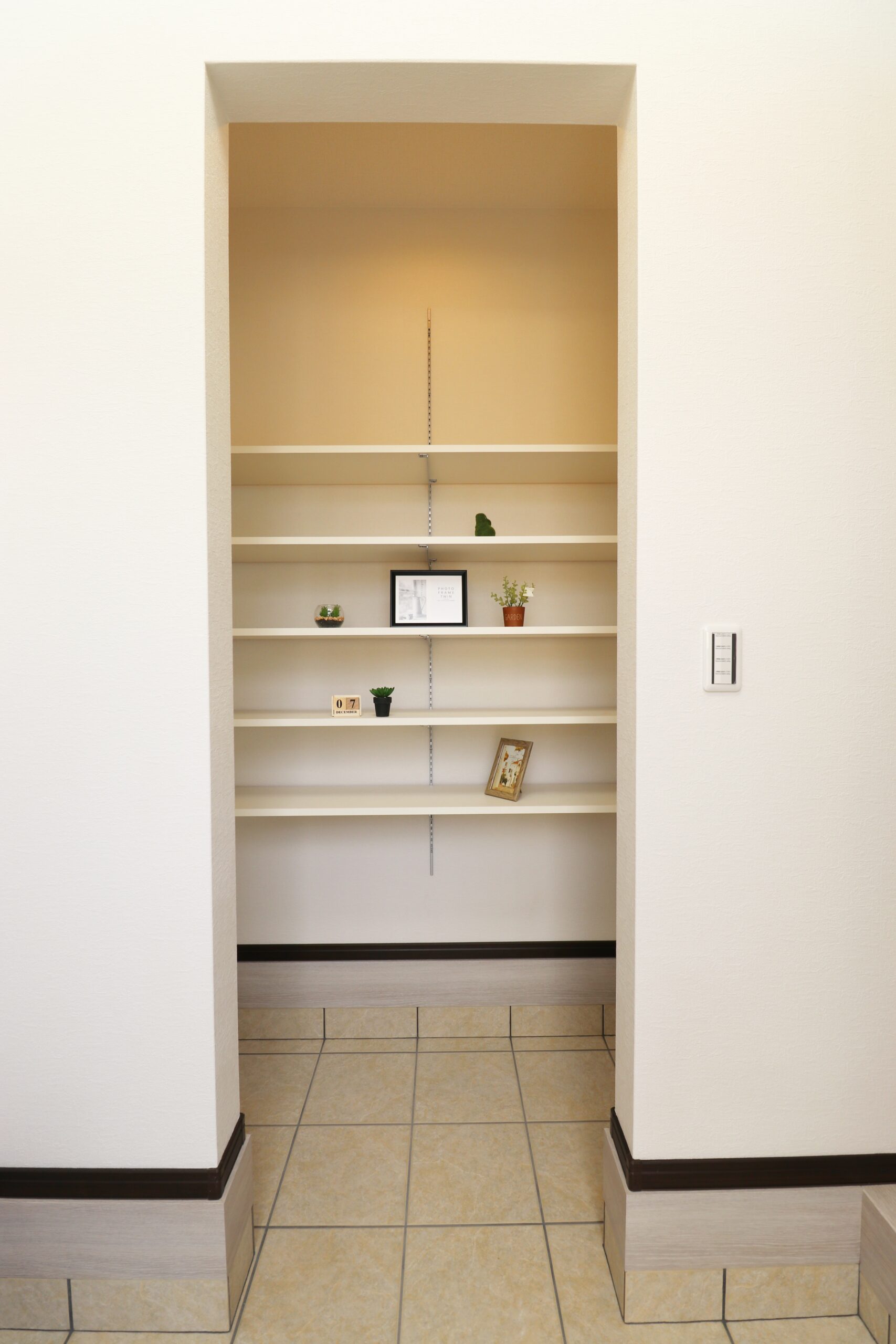 大容量のシューズクローゼットを採用し、玄関が散らかりにくく、来客時にもすっきりとした印象を保てる住まいとなっています。日々の出入りもスムーズに行えます。