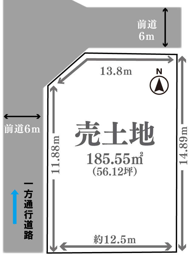 北(公道)幅員:6.0m・間口13.8m / 西(公道)幅員:6m・間口:11.88m