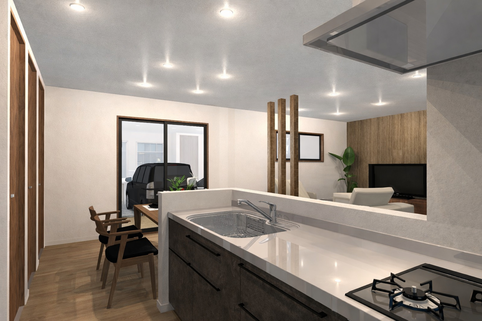 リビング側からもママの顔が見えるのでお子様も安心の配置です!自然と家族が集まるリビングです!