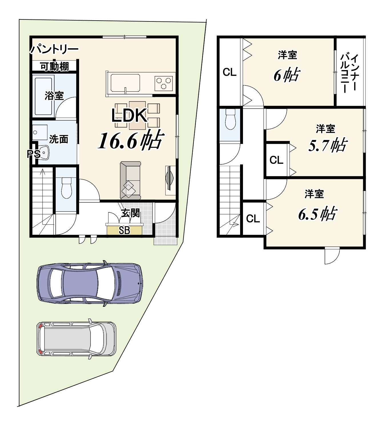 洋室:6.5帖/6帖/5.7帖