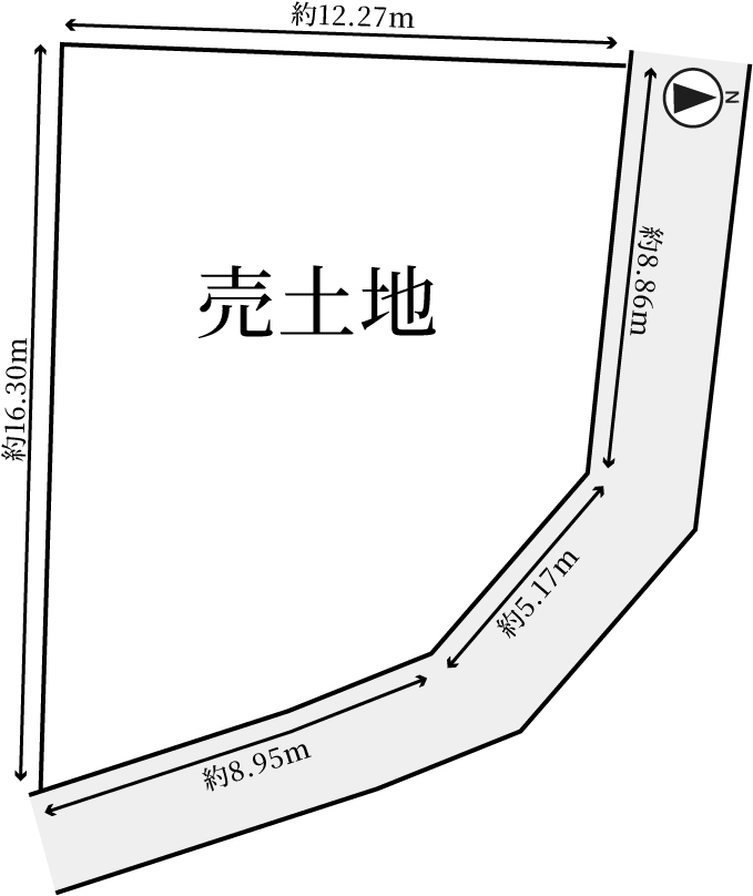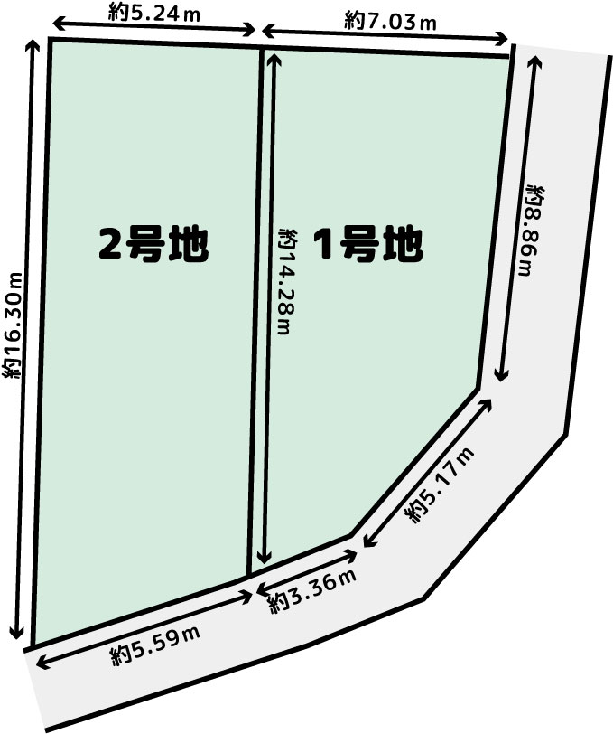 北側(公道)幅6m、間口8.86m 東側(公道)幅6m 間口14.12m
