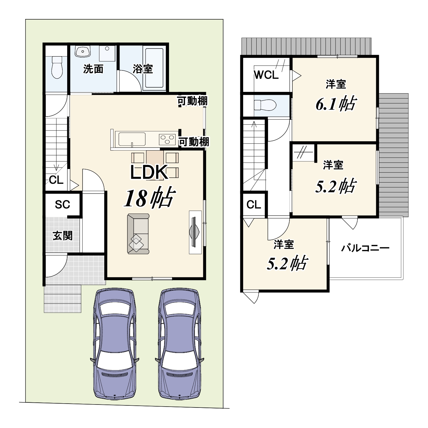 • 間取り内訳 LDK:18帖