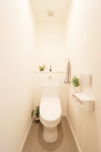 壁リモコンで両サイドがスッキリとしており、多彩な機能付で清潔なトイレ空間に。温水洗浄便座なので冬も温かくリラックスできる空間です。