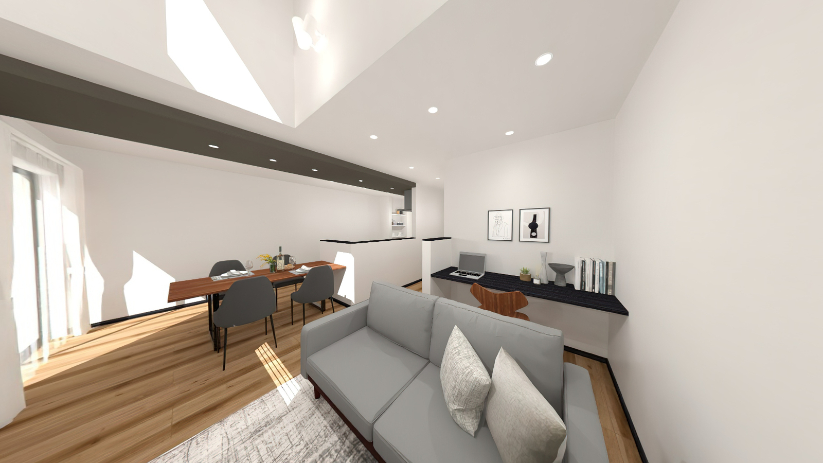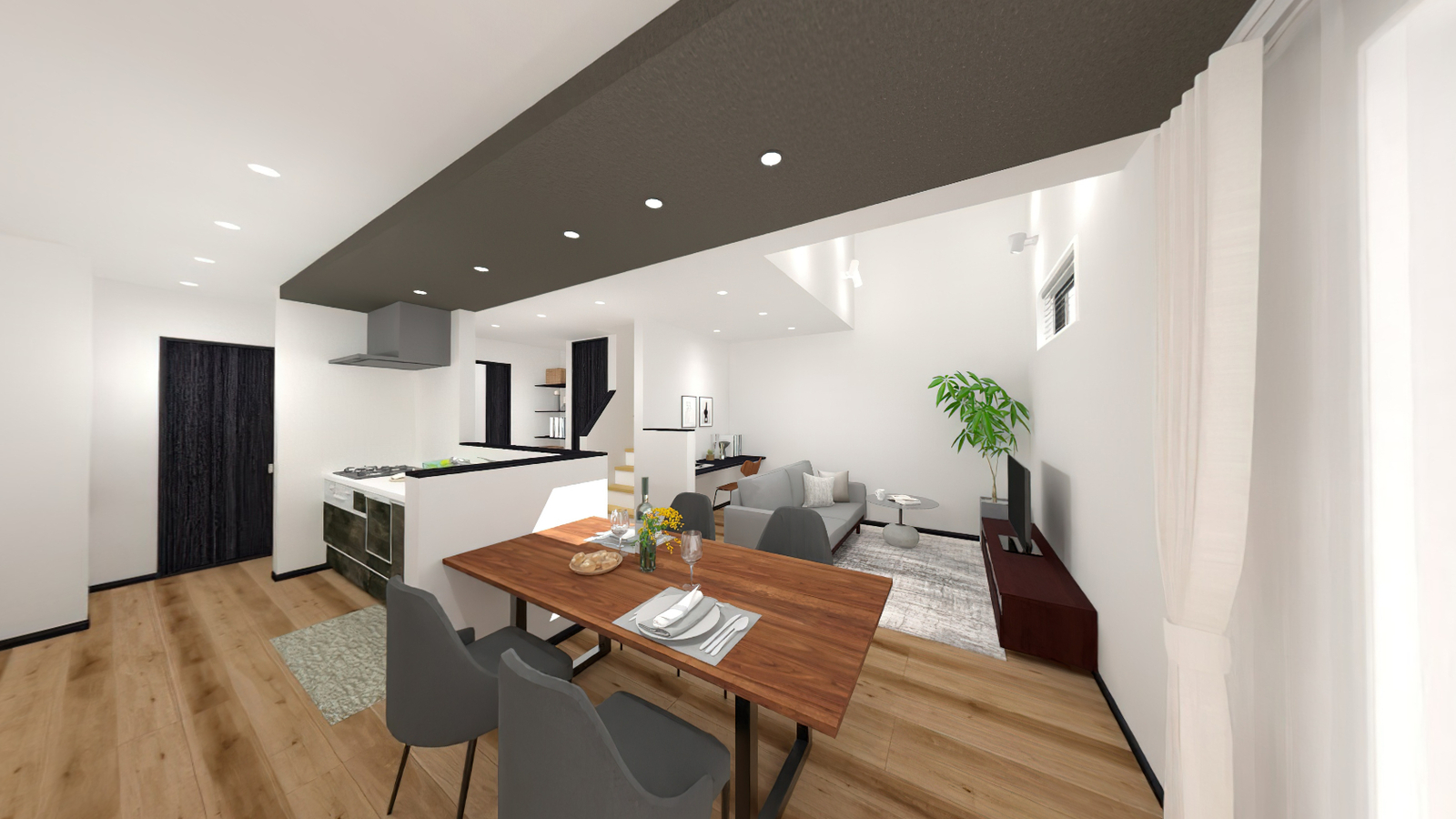 ホワイト×ダークカラーでまとめた落ち着いた室内