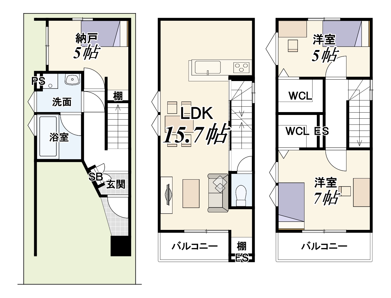 3F:洋室5帖/洋室7帖