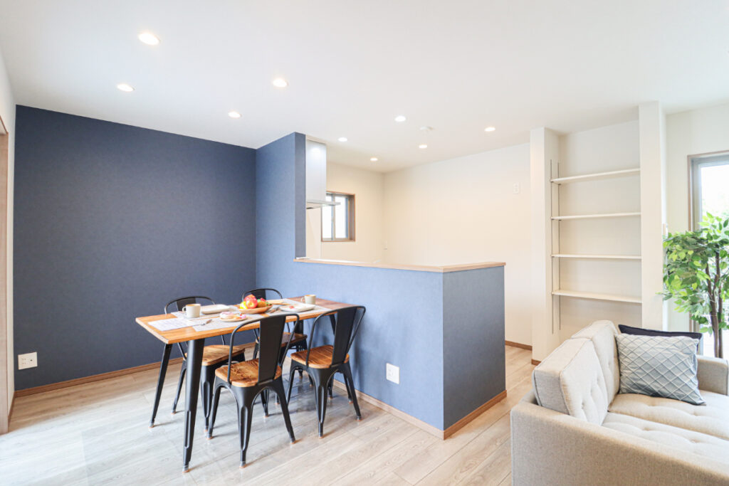 グレーの壁紙が高級感を出し落ち着く空間に。