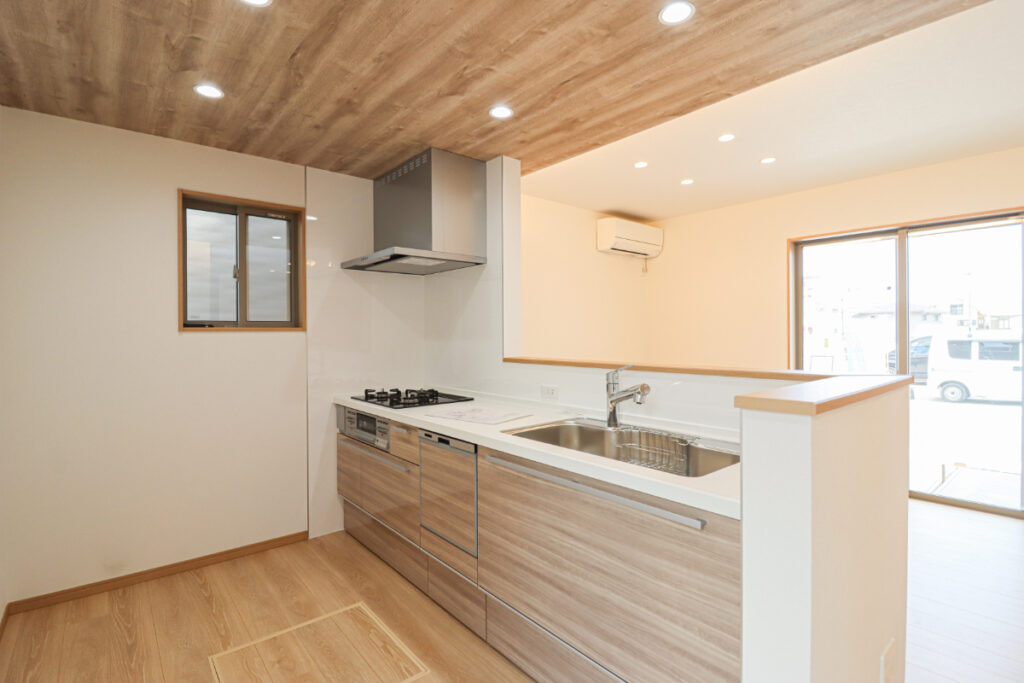 木目天井で温かい雰囲気に。