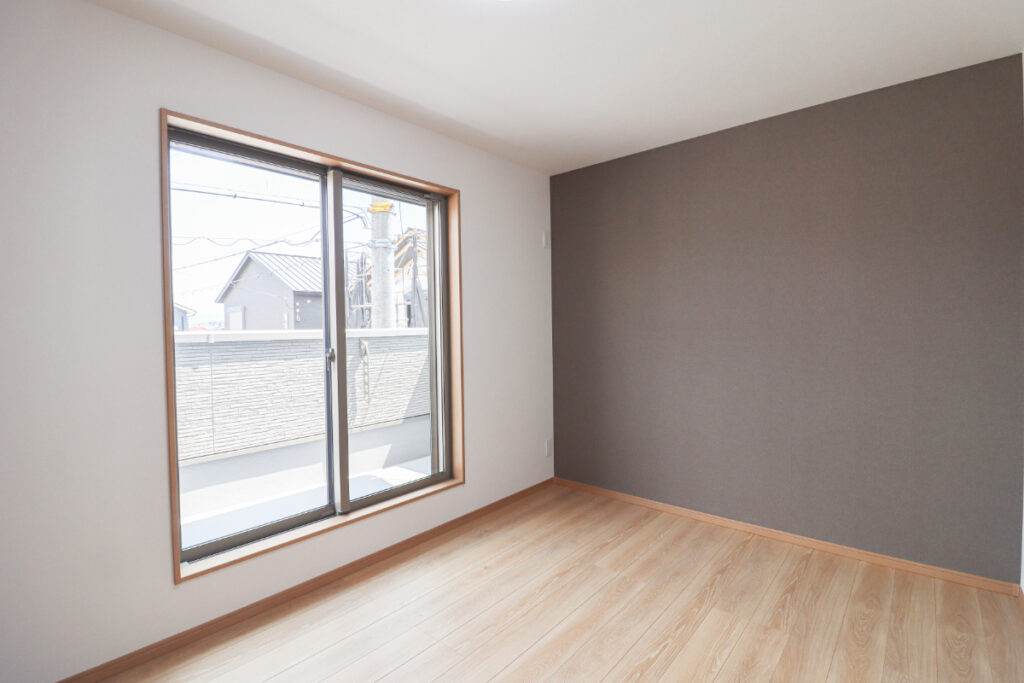 グレーの壁紙が高級感を出し落ち着く空間に。