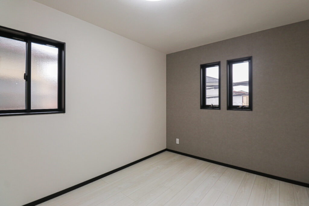 グレーの壁紙が高級感を出し落ち着く空間に。