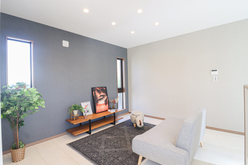 グレーの壁紙が高級感を出し落ち着く空間に。