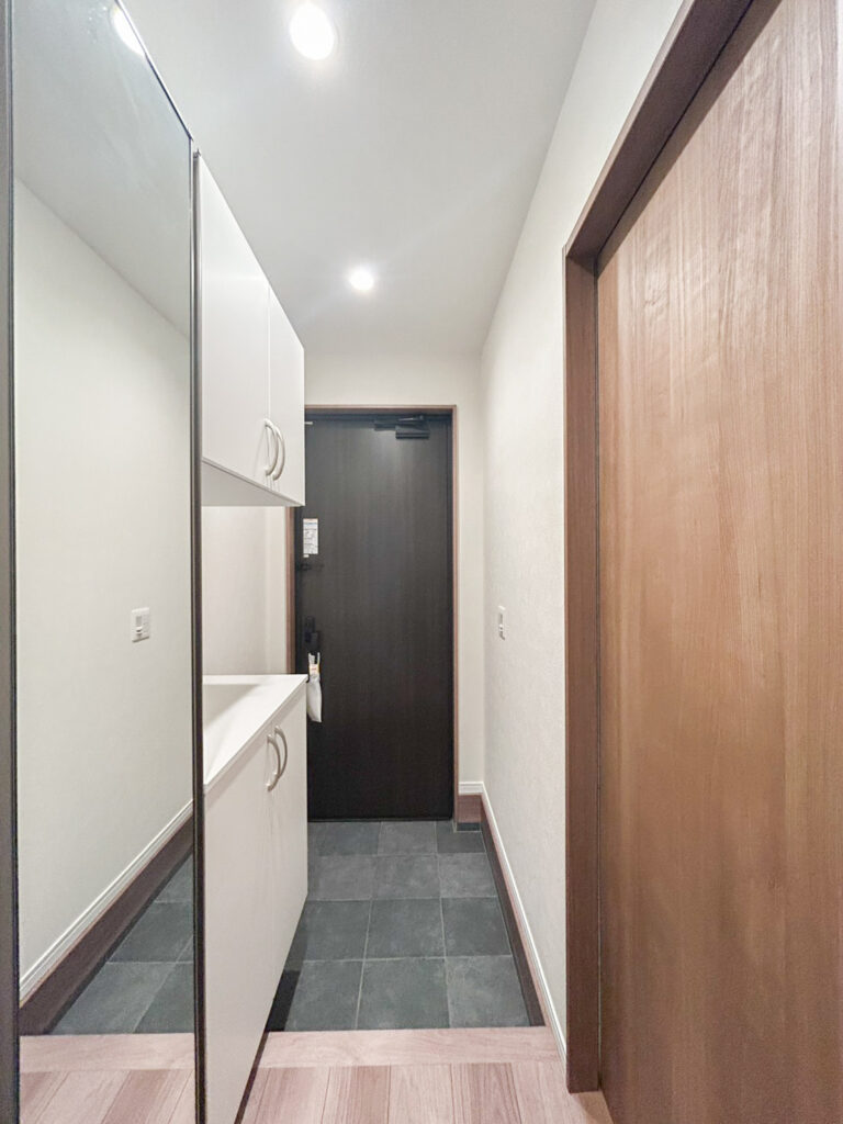 グレーの壁紙が高級感を出し落ち着く空間に。