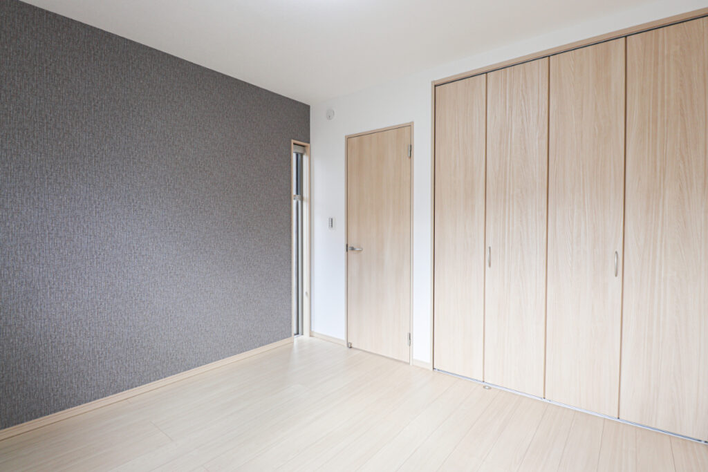 緑の壁紙がアクセントのお家