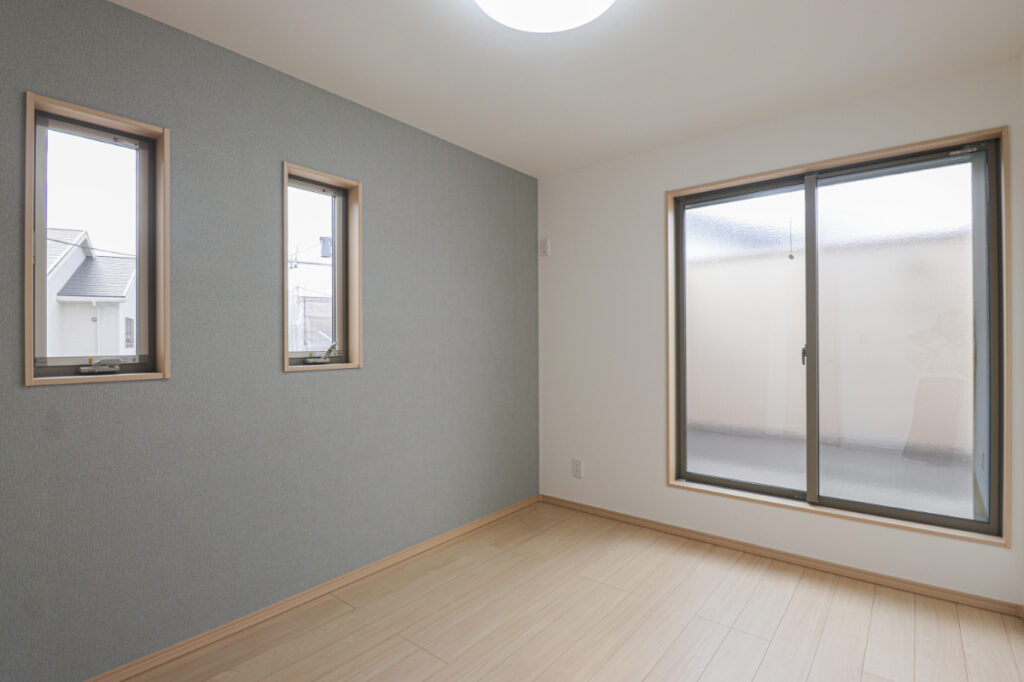 グレーの壁紙が高級感を出し落ち着く空間に。